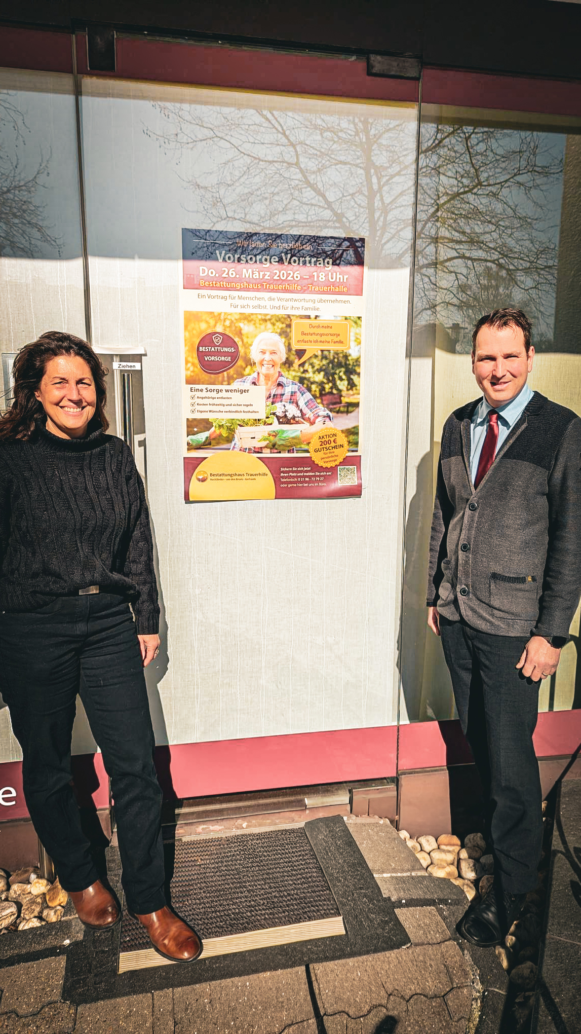Stephanie Flöth und Daniel Fischbach vom Bestattungshaus Trauerhilfe laden ein zum Vorsorge Vortrag.